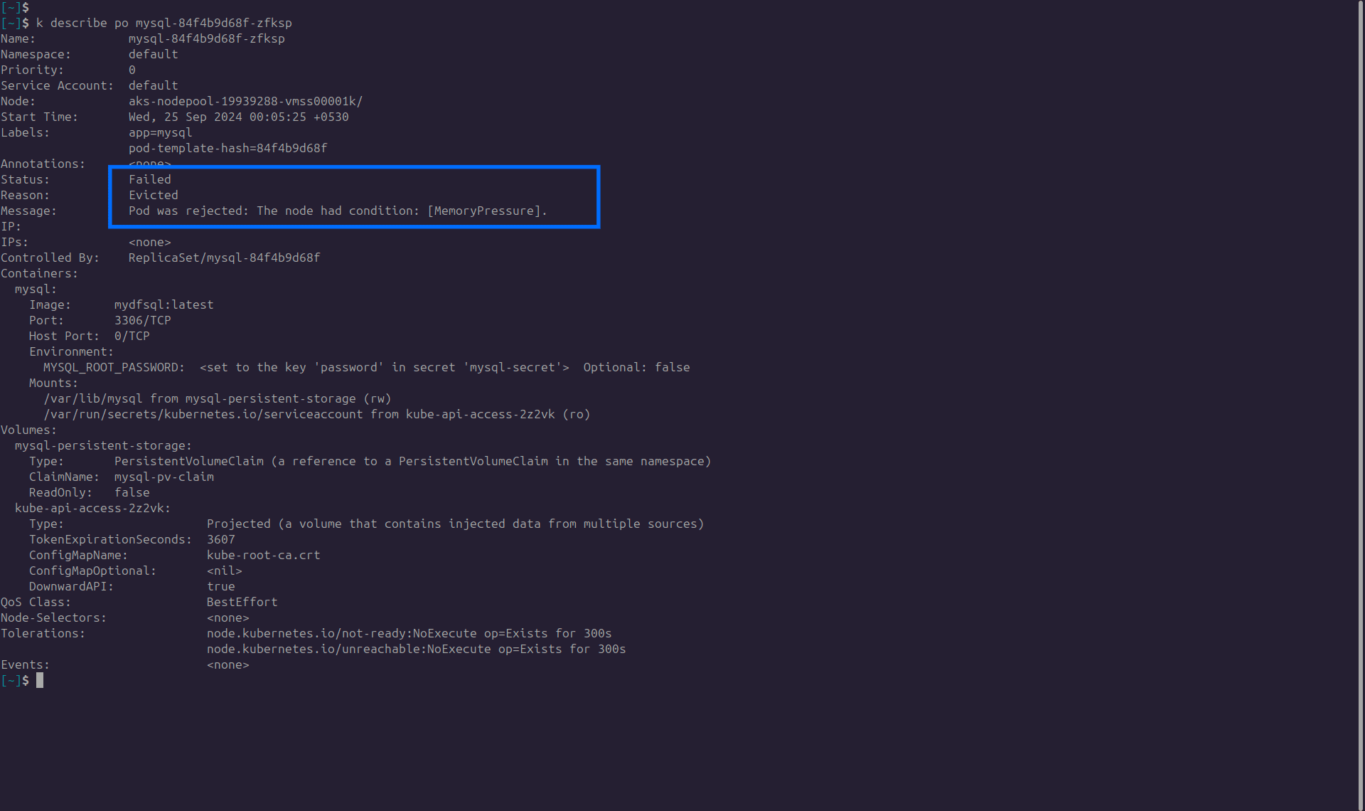 In the below screenshot, you can see that there is an event, that is the failure of the pending pod.