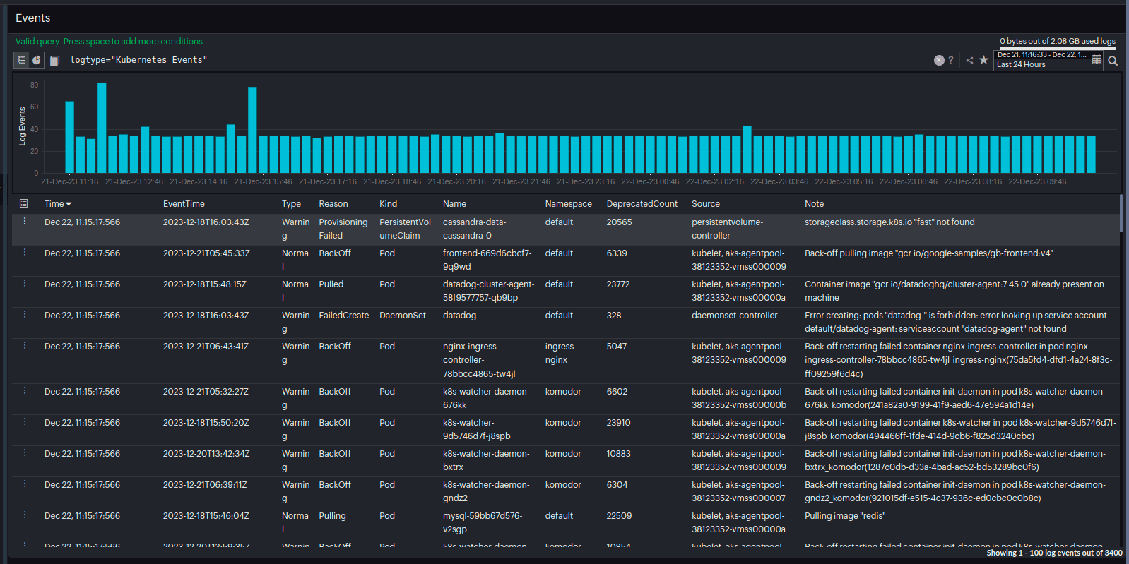 However, you can avoid the user getting impacted as early as possible. All the noteworthy events related to your cluster will get registered in the Site24x7 Kubernetes event log report.