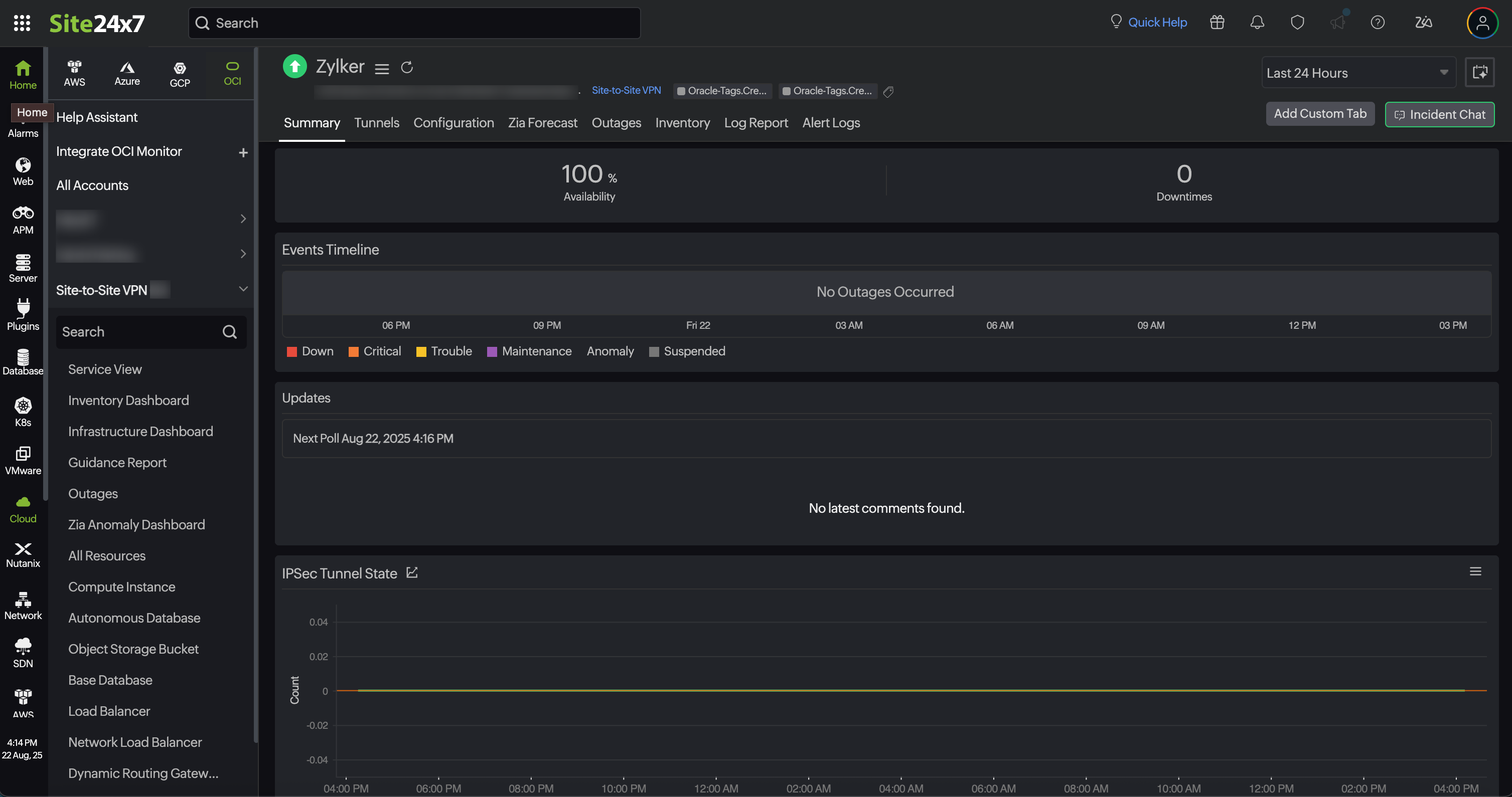 Start monitoring your OCI Site-to-Site VPNs today in Site24x7 to gain complete visibility into your VPN connections and tunnels.